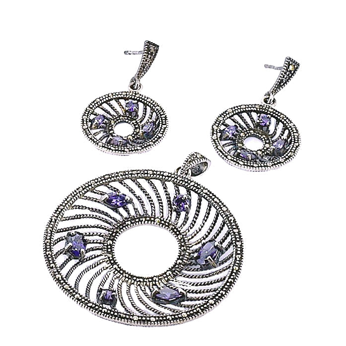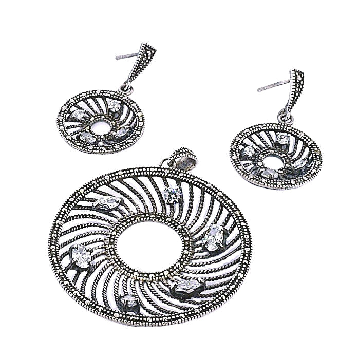 Juego Círculos Plata Con Marquesita