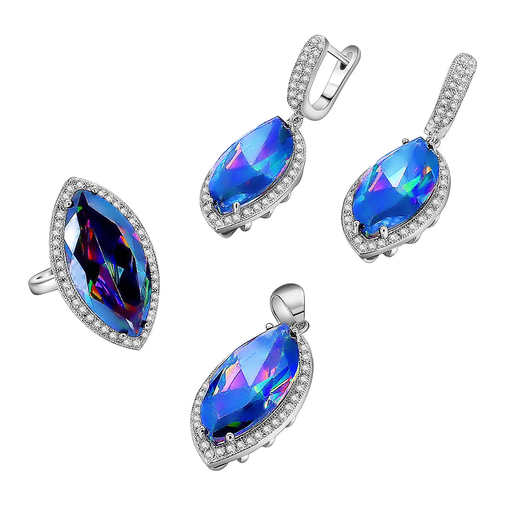 Juego De Arete Dije Y Anillo Plata Con Circonia