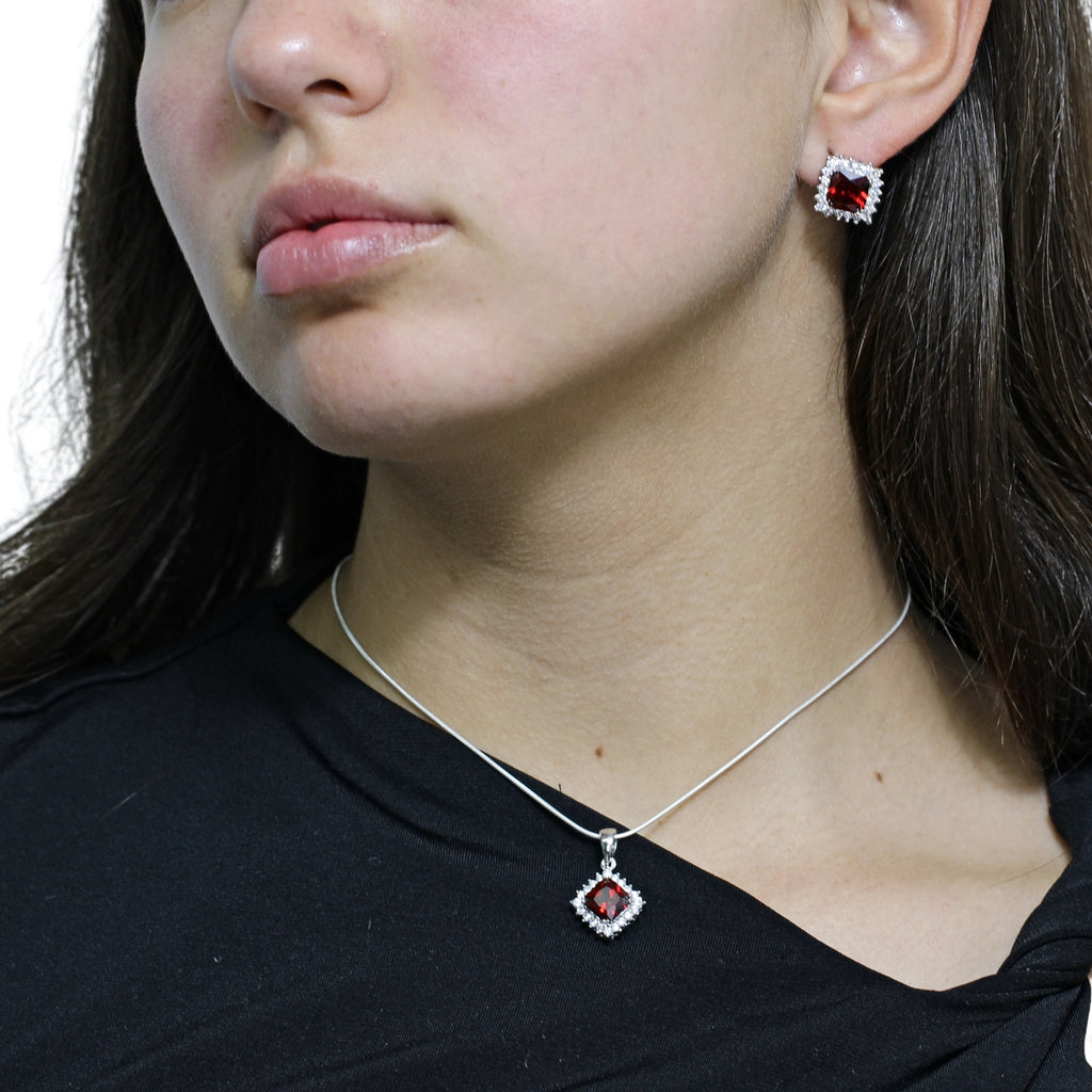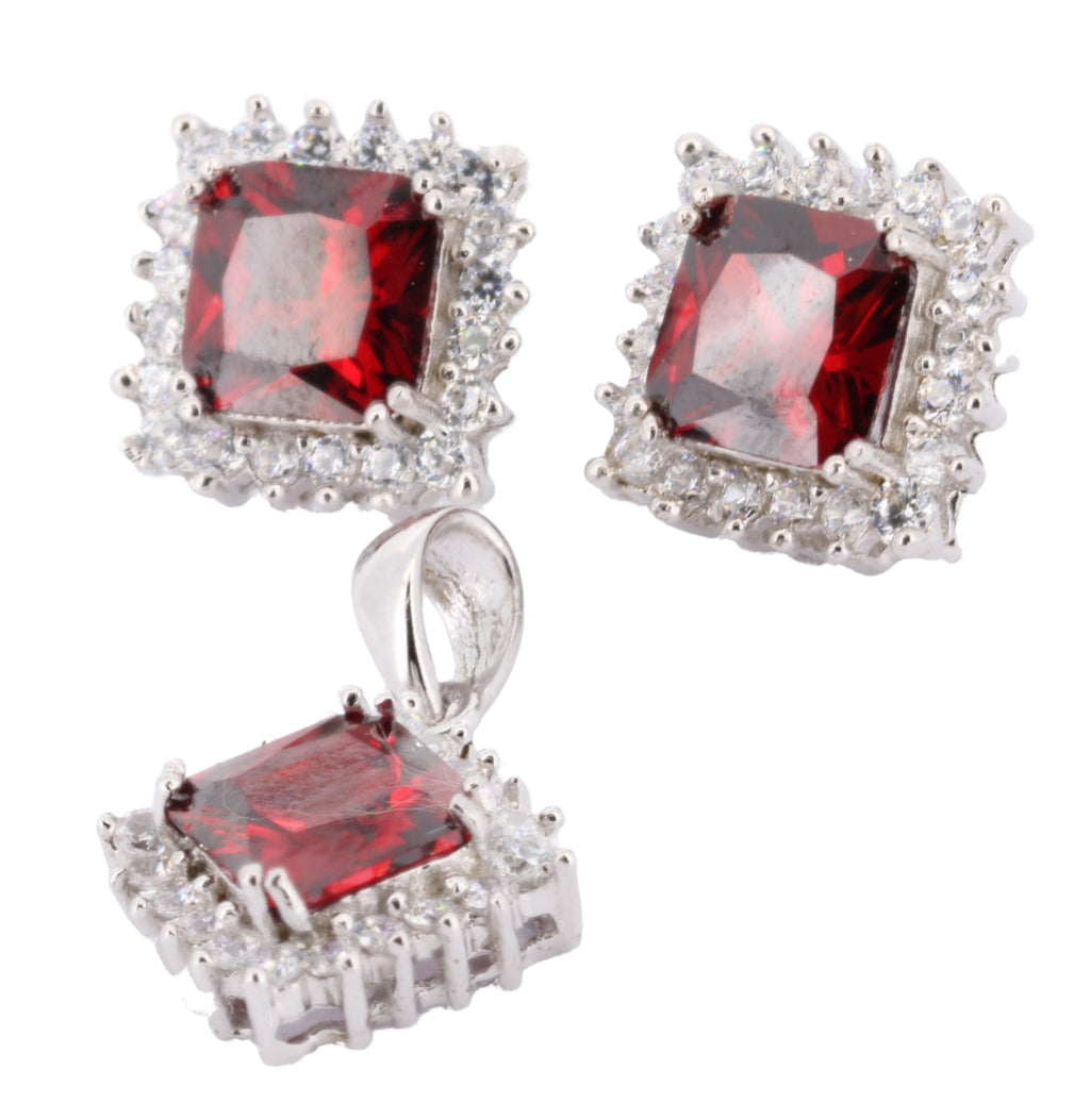 Juego De Cuadrado Plata Con Circonia
