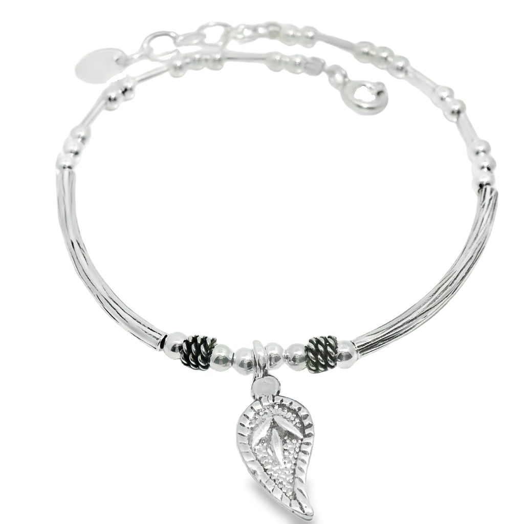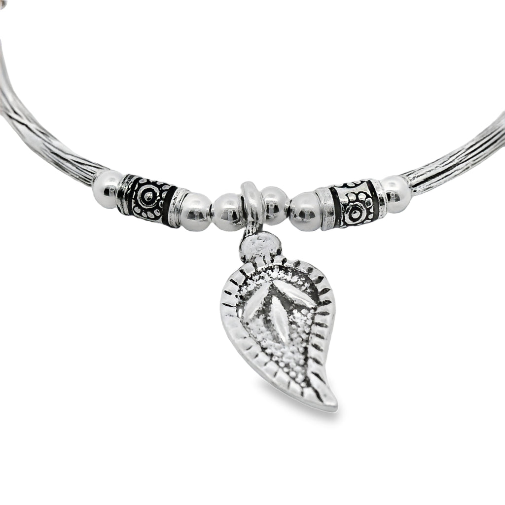 Pulsera Rigida de Plata con Dije de Hoja